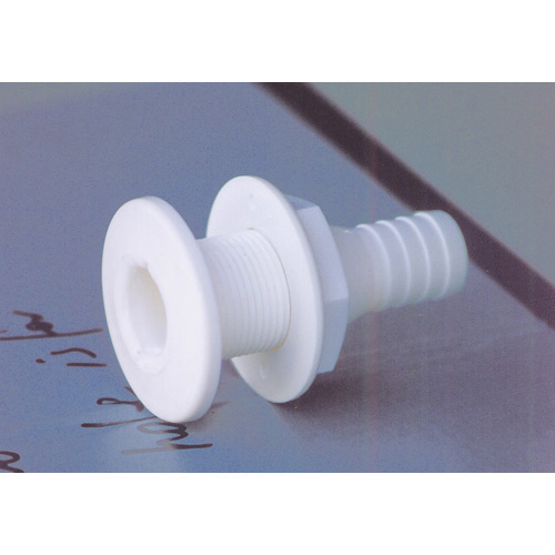 White moulded plastic through hull fittings. Suitable for most above waterline outlets.