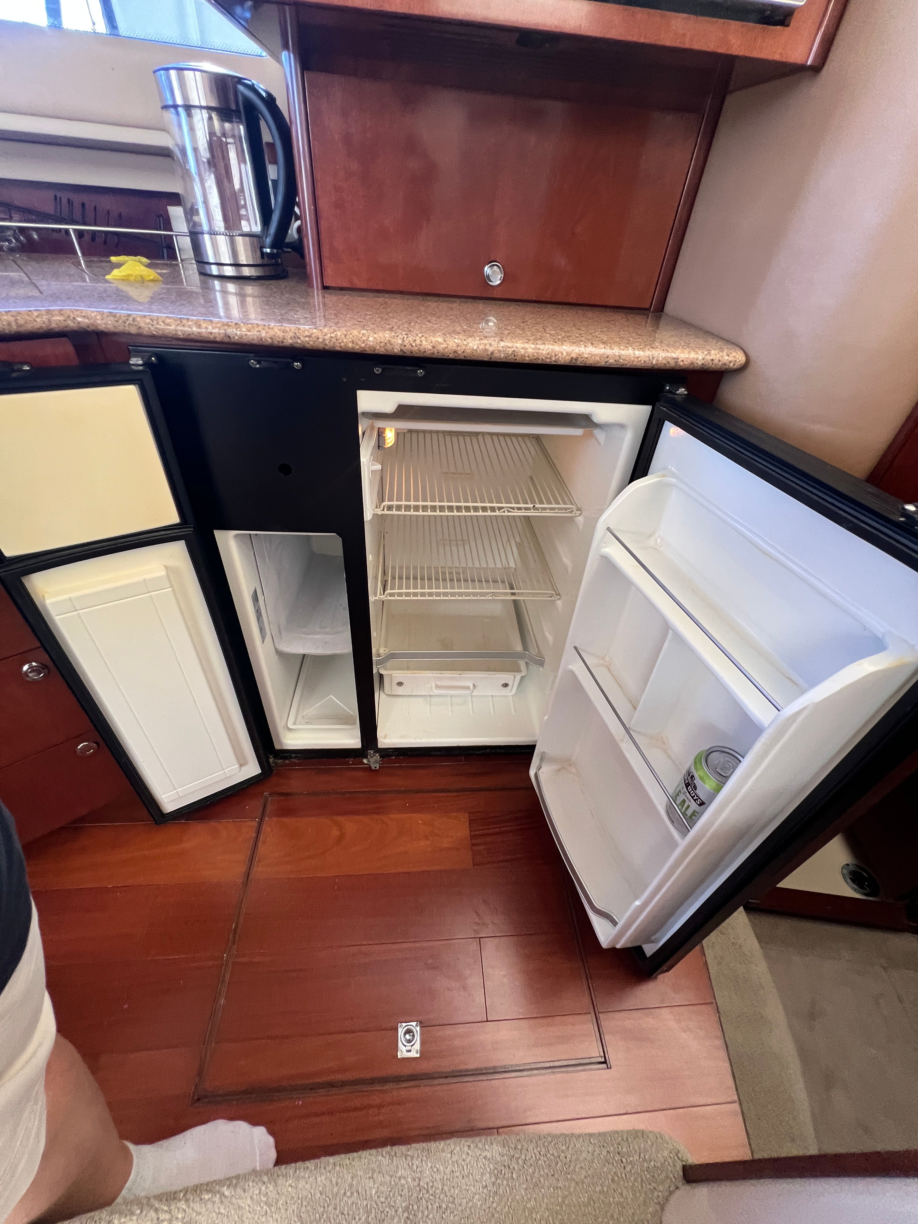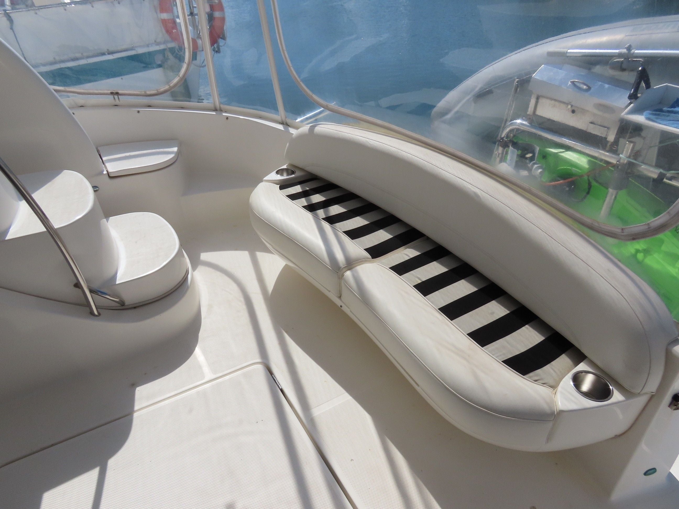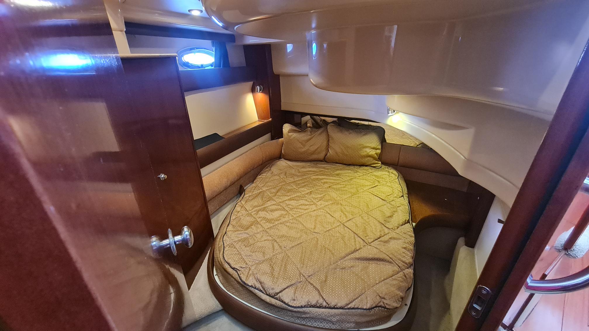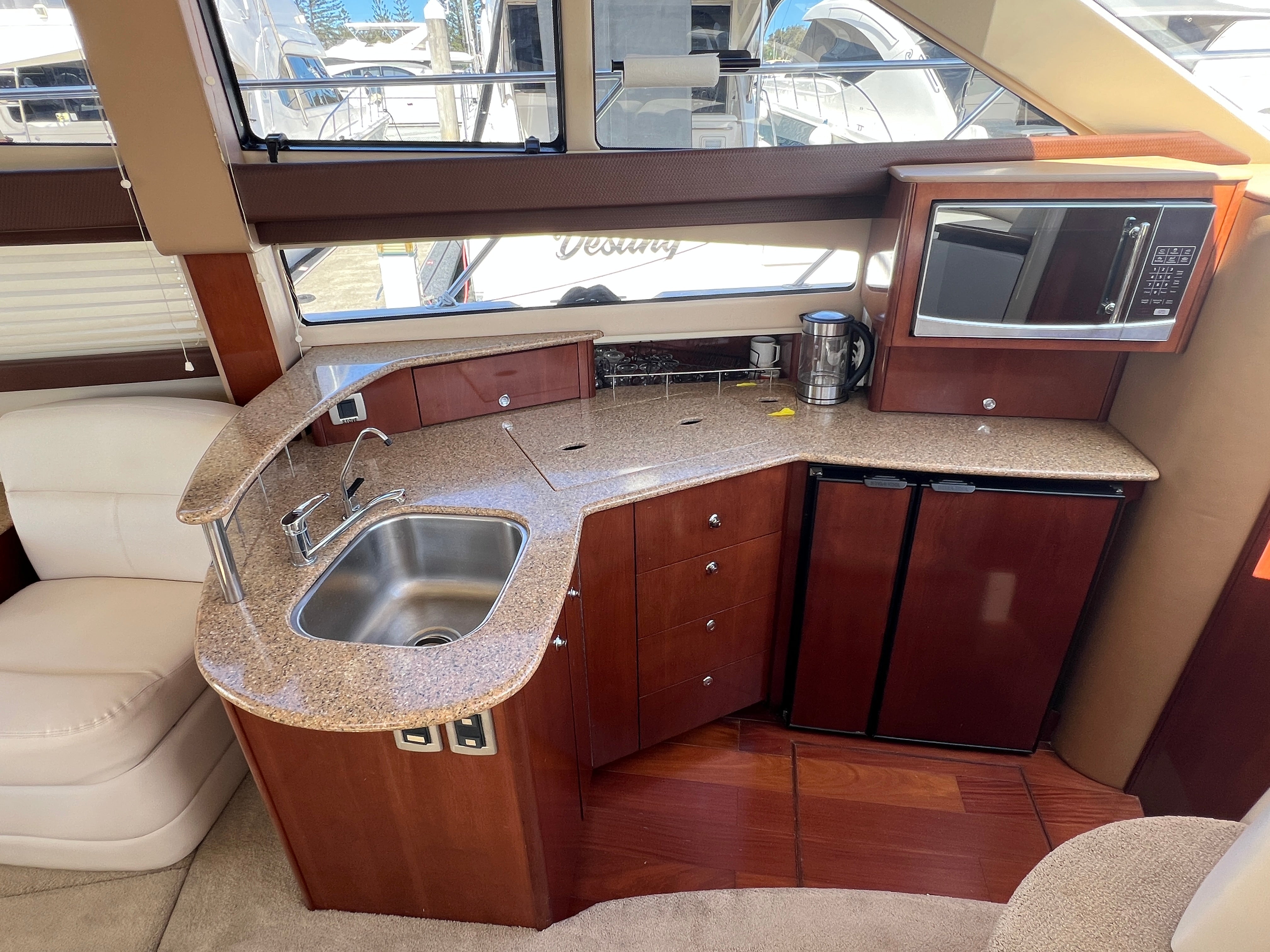 Up top, the roomy flybridge and extended bridge-overhang create a second living zone offering superb visibility, plenty of seating and a relaxed helm environment for cruising or entertaining. The design cleverly integrates practical touches - the molded staircase to the flybridge lifts to give full stand-up access to the engine room, under-seat storage on deck, a concealed anchor locker, and more. With dependable twin diesel engines powering the performance and a layout that favours comfort, live-aboard capability, and easy social use, the Meridian brings together the best of comfort, practicality, and yachting style - ideal for couples, small families or anyone wanting a versatile cruiser for weekends or longer get-aways.