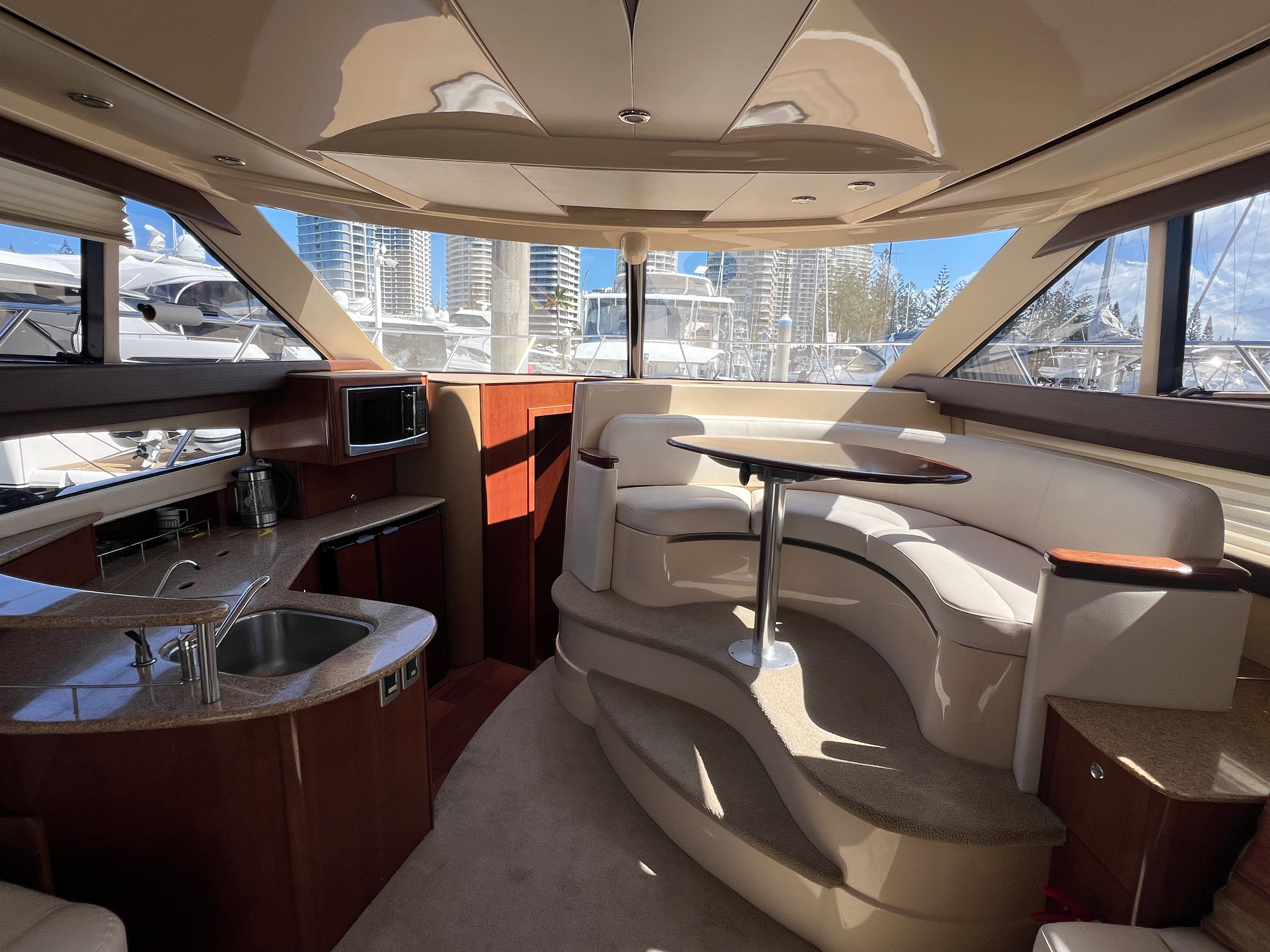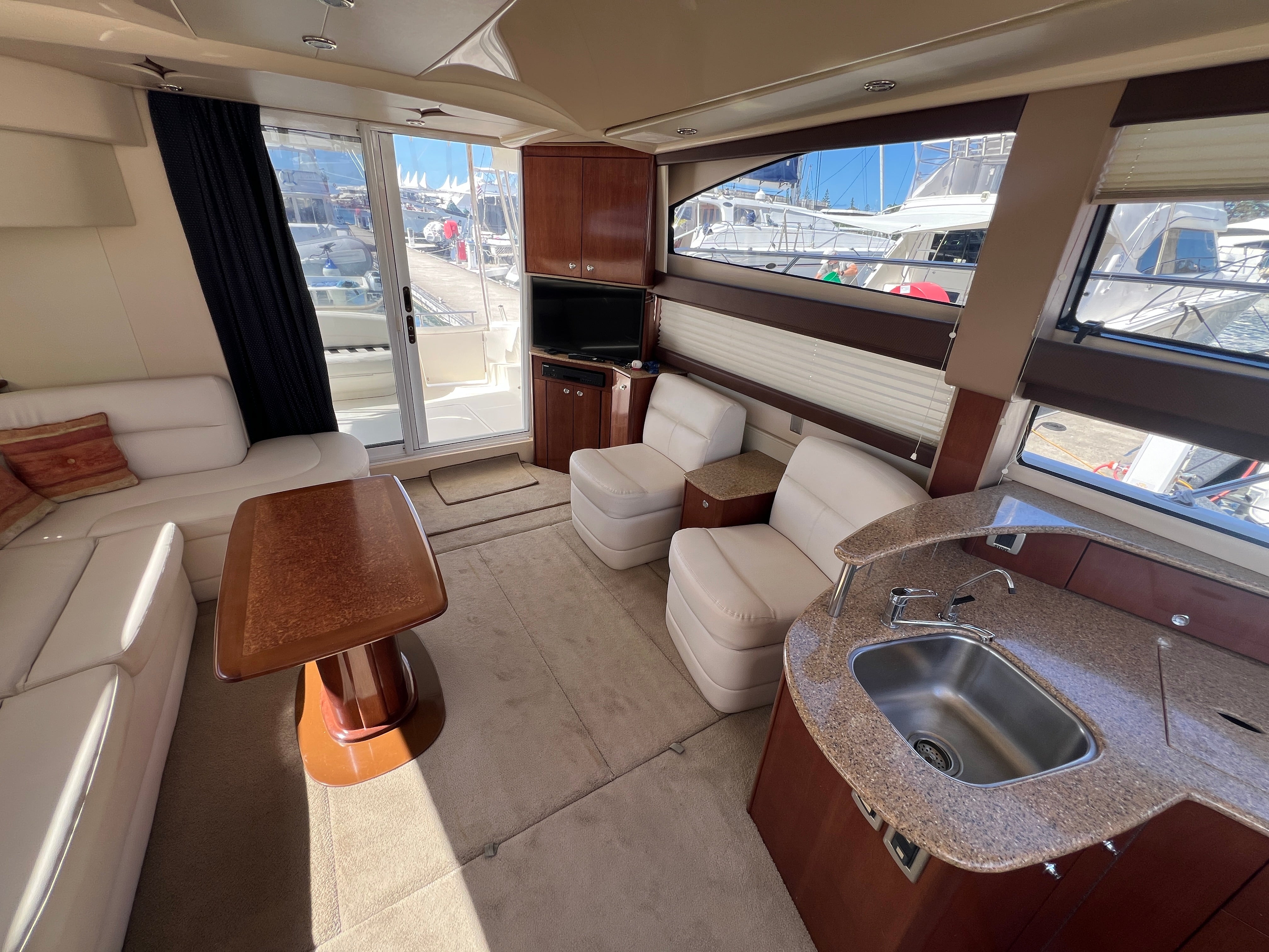 The Meridian combines open social space with well-designed private accommodation, creating a layout that's both practical and inviting. The interior woodwork and finishes are warm, and large windows keep the salon light and airy. Whether entertaining in the salon and galley, or retreating to the private staterooms below, the Meridian offers space, comfort, and thoughtful design that make living onboard genuinely enjoyable.