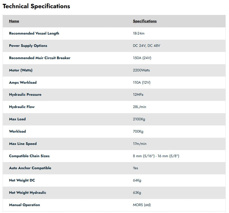 Muir Compact HR THOR 4200 Aluminum Anchor Winch 24v or Hydraulic 13mm Chain 2200watt