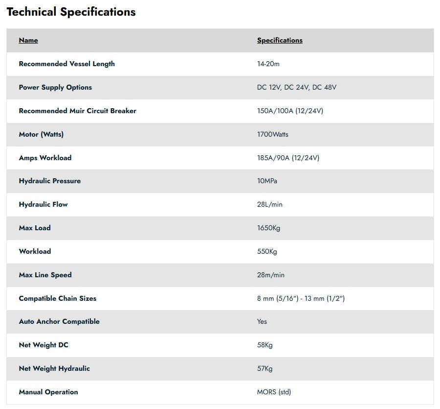 MUIR COMPACT HR3500 Jaguar Winch 12/24v 1700watt 10mm or 13mm Chain
