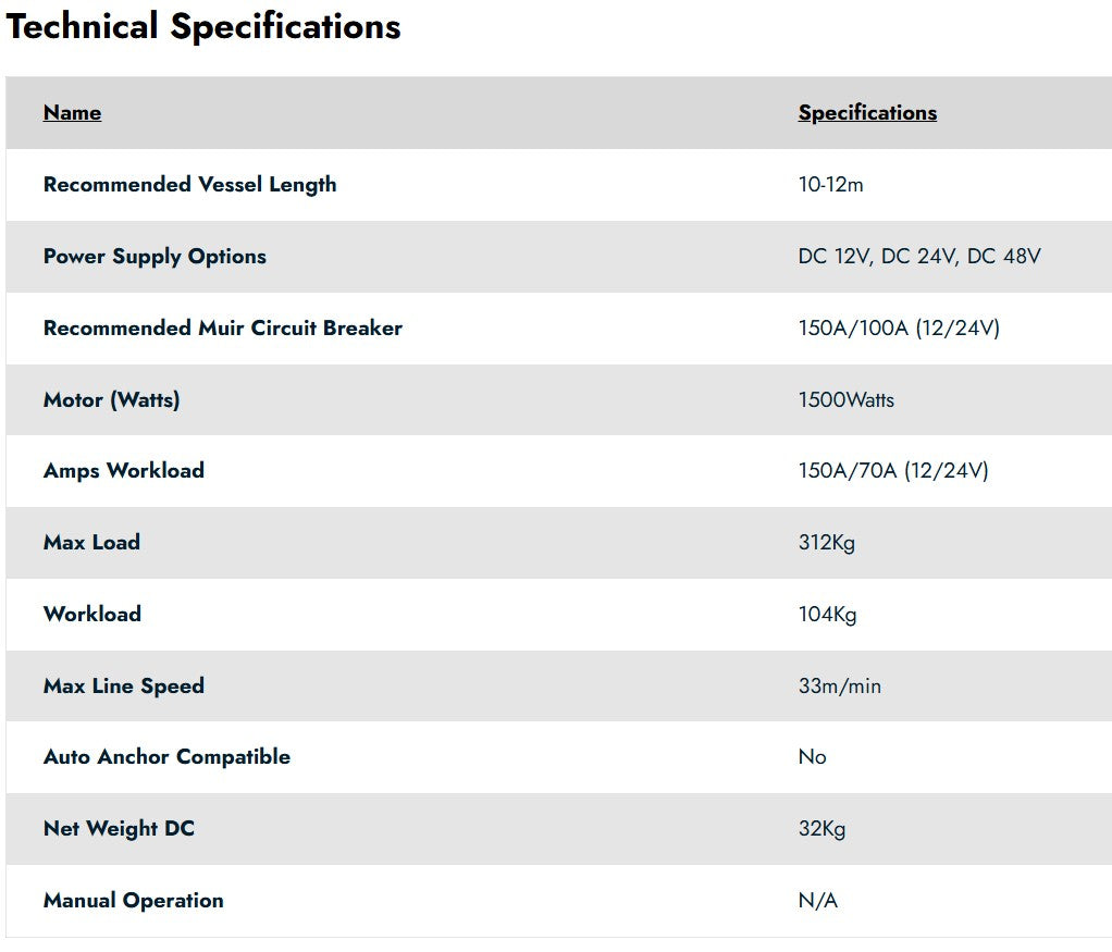 - Fast, easy and reliable anchoring with a Muir Drum Winch