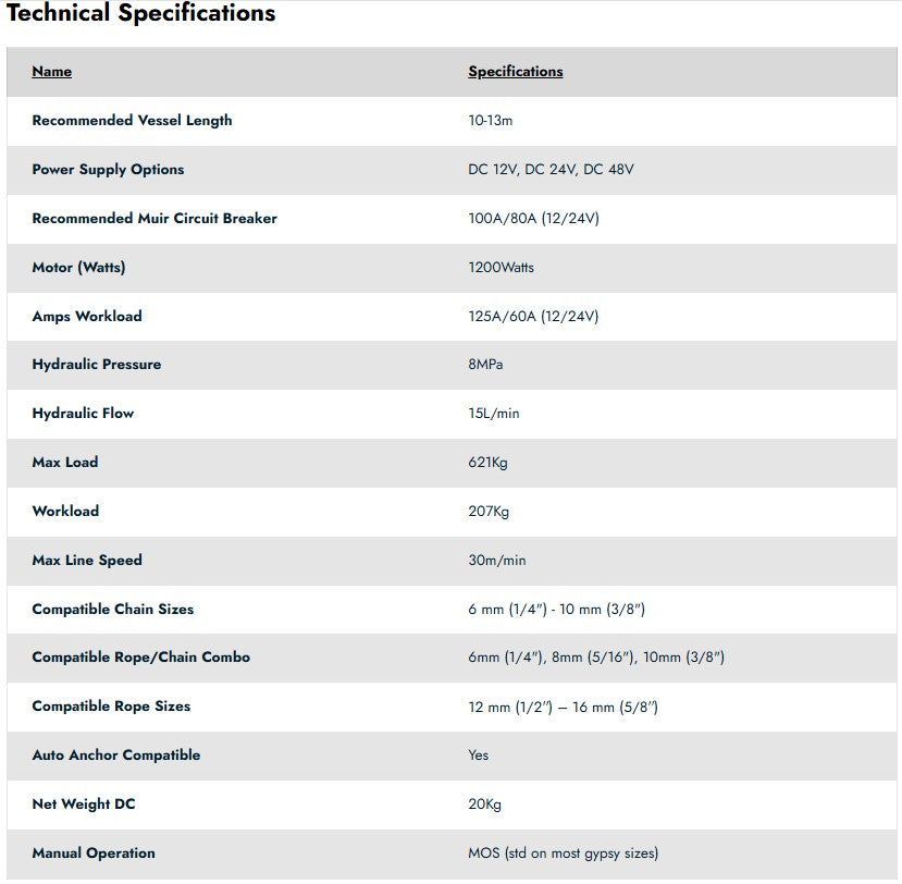 MUIR STORM VRC 1250 WINCH 24 VOLT 8 mm Chain