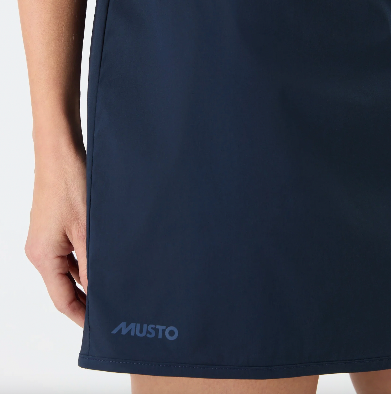 Wear this Women's Fast Dry Skort in warm weather for a stylish look that is also practical for outdoor adventures or afternoons cruising along the coast. The side zip opening aids ease of dressing and a thigh pocket provides discreet storage. A reflective Musto logo sits just above the hem on the right-hand side.