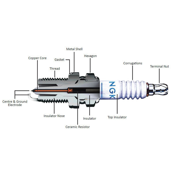 A spark plug operates by directing electrical current to flow through a centre electrode, forming a spark across an electrode (or air) gap, completing the circuit to a ground electrode. The centre electrode is surrounded by a ceramic insulator which is nonconductive preventing current leakage and ensuring electricity flows in the desired direction.