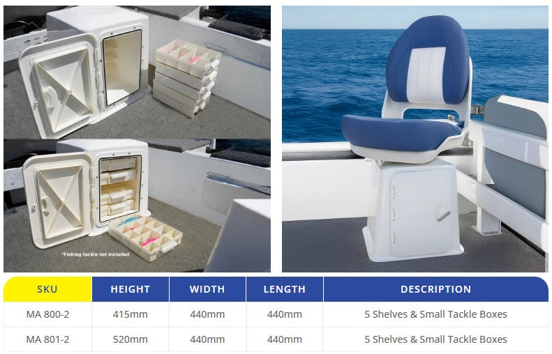 Oceansouth Boat Seat Boxes with 5 Shelves & Tackle Boxes