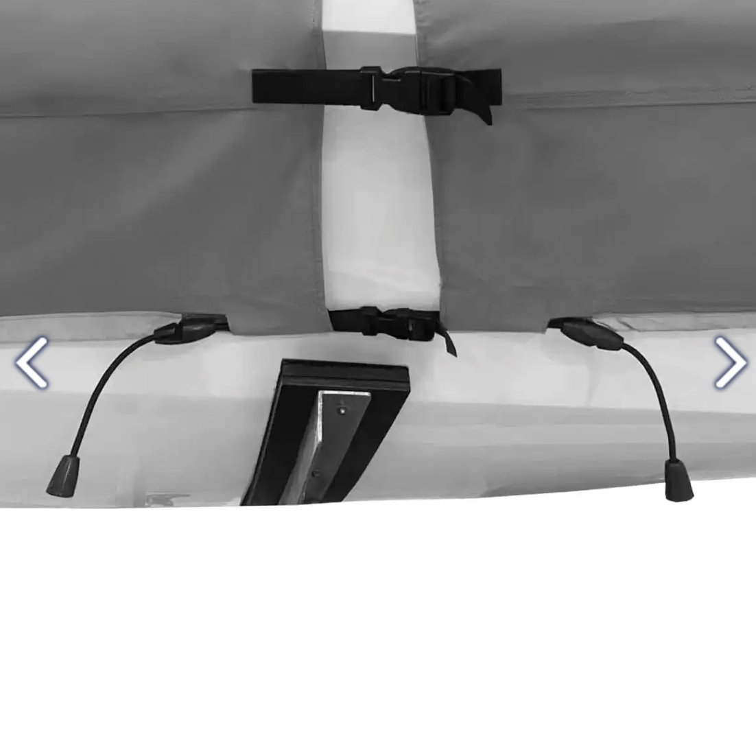 - Includes all webbing straps, buckles, rope and cleats for a tight and secure fit.