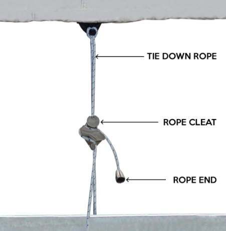- A full set of Rope Ends, Rope Cleats and Tie-down Rope.