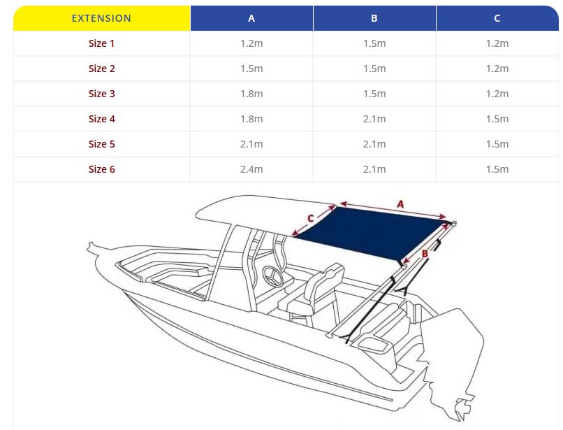 OCEANSOUTH T-Top Boat Shade (Stern Shade) Extension Kit