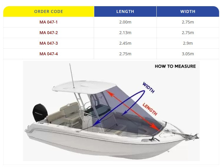Oceansouth T-Top Extension/Bow Shade is specifically designed for T-Tops and is easily attached to the front providing a wide shaded area, protecting you from harmful UV rays and harsh marine environments.