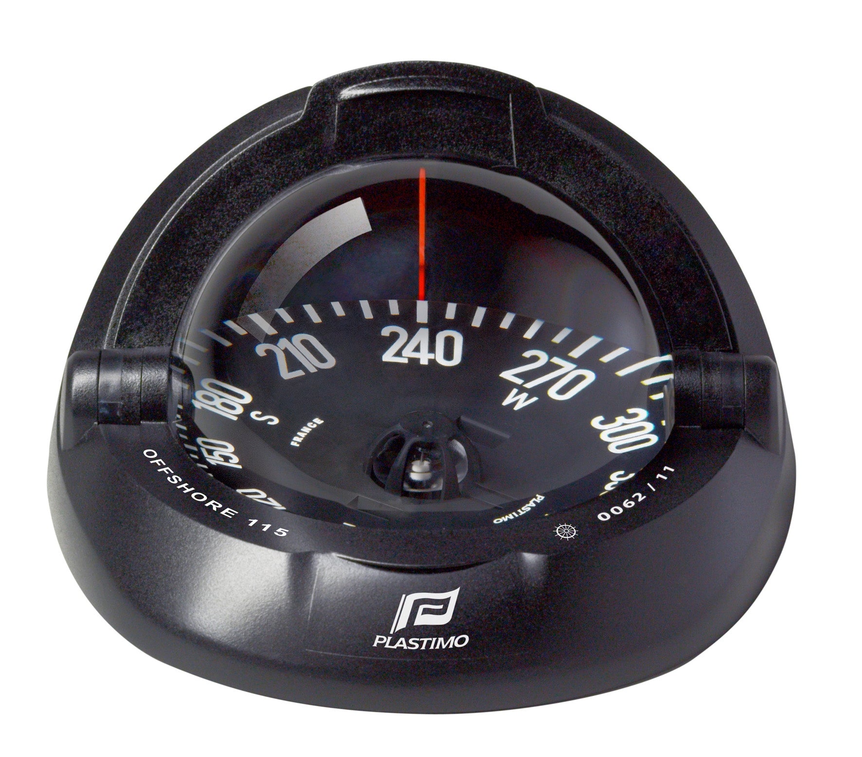 The Plastimo Offshore 115 range of compasses are suitable for powerboats from 6 to 12 meters in length. This range has "Universal Global Balance" which means they are NOT zone dependant compasses so they can be used anywhere in the world. Whatever the boat speed, hull pounding vibrations, the offshore 115 will remain fully efficient due to Plastimo's exclusive "vibration absorber" system which ensures that the compass card remans stable in all conditions. Available in flush mount in a variety of card types and colours - with an optional binnacle if a binnacle mount is desired.