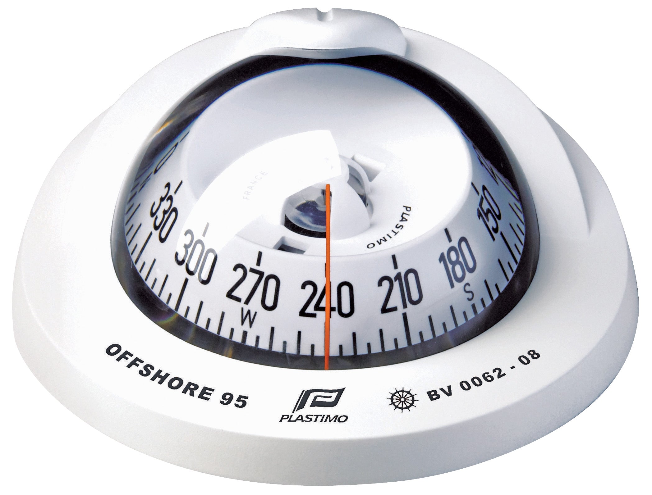 The Plastimo Offshore 95 Range of compasses are suitable for powerboats from 6 to 12 meter length. Whatever the boat speed, hull pounding or vibrations, the offshore 95 will remain fully efficient due to Plastimo's exclusive "Vibration absorber" system which ensures that the compass card remains stable in all conditions.