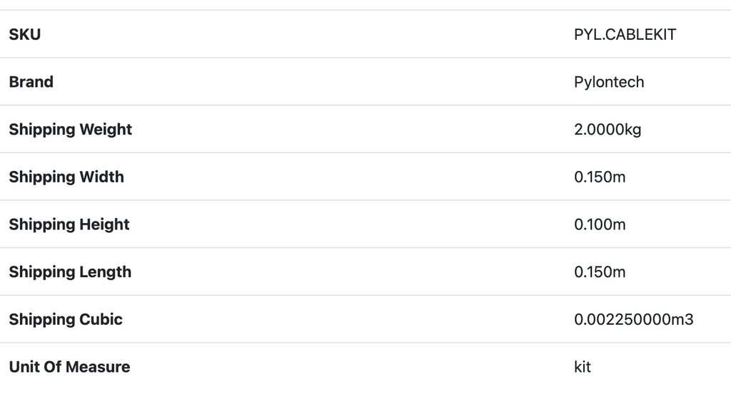 Pylontech cable kit for use between a Pylontech battery or battery bank to the inverter charger.