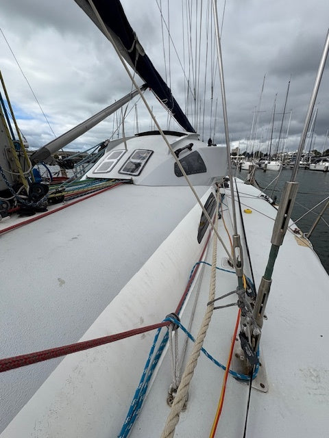 Over the past two years, Quest underwent an extensive, methodical overhaul to prepare her for 11,000 miles of non-stop, two-handed offshore racing – to Japan and back. Every system was examined, upgraded, or replaced with Category 1 ocean racing standards in mind. She was fitted out with spares for every conceivable failure point and completed the race campaign without a single failure or breakage.