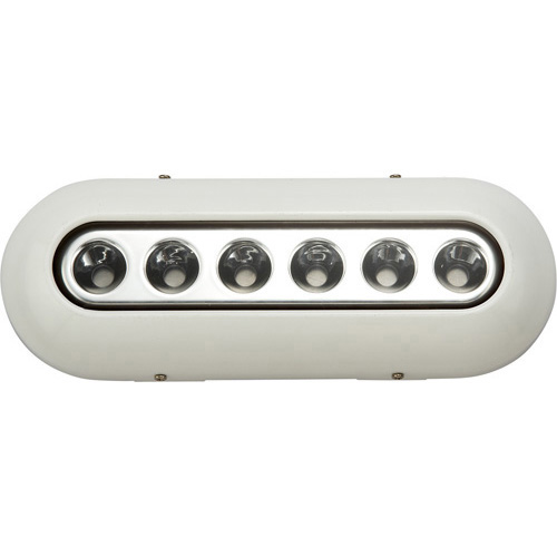 Moulded Polymer With 6 x 3 Watt LED’s These surface mount underwater lights are made from non-corrosive and chemical resistant polymer which totally encapsulates the LED’s and has an IP68 totally waterproof rating. The 6 x 3 watt Samsung LED’s have a 50,000 hour life and an effective Lumen rating of up to 710 lumen for the white light and 159 Lumen for the blue colour light. The lights are supplied with a rubber wiring grommet and gland with 1.5 metres of wiring and S/S fastening screws. 2 light output colours available - white or blue. Suitable for both 12 volt and 24 volt systems. MUST be used underwater as these bright lights are water cooled. Light size : 162mm x 63mm