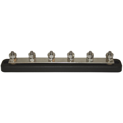 Quality, heavy duty electrical buss bars allow connection of multiple DC items from one main supply. Made of tin plated copper for high conductivity with insulated ABS base.