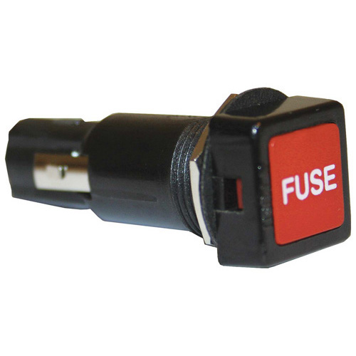 Clip open, square head fuse holders with red fuse cap and dress ring. Suits RWB allow illuminated panels. Fuse not included.