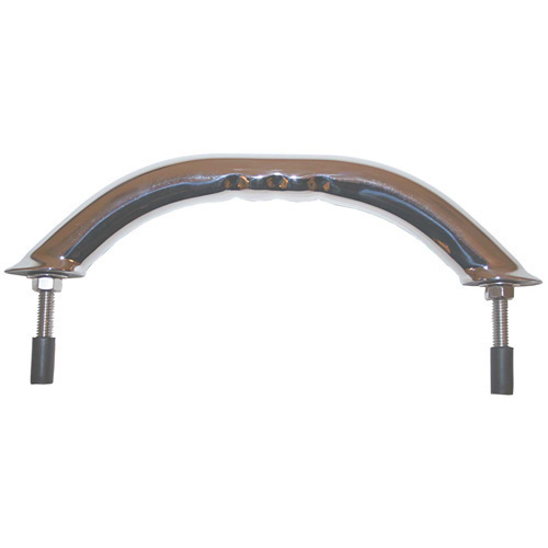Bolt through style hand rails with wave pattern hand grip underneath and flared ends. Manufactured from heavy duty 25mm diameter polished 304 grade stainless steel. The studs are 45mm long with 5/16" whitworth thread and hex nut are welded into the hand rail base. All handrails are 60mm height above deck.