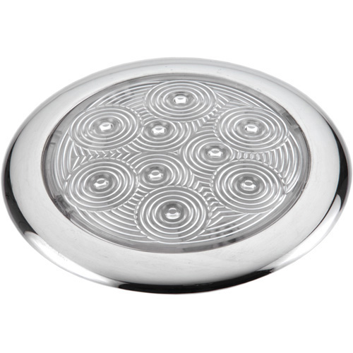 Stainless steel base and surround with clear diffused polycarbonate lens. Does Not include a switch.