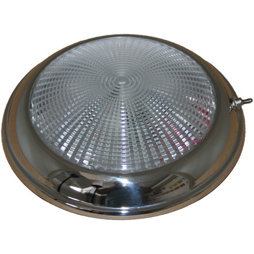 A low profile polished stainless steel LED dome light only 30mm height and includes an on/off toggle switch on the light housing. Concealed fastenings for a sleek exterior finish.