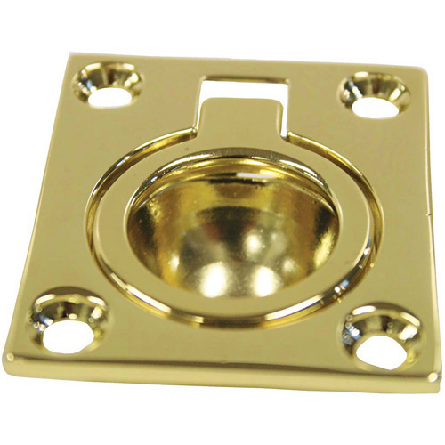 Small Flush Ring Pull - Rectangular - Brass - 43 x 37mm