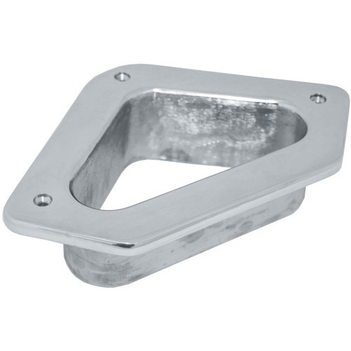 Cast 316 grade stainless steel triangular shaped hawse hole which is ideal for stern corner mounting on cruisers.