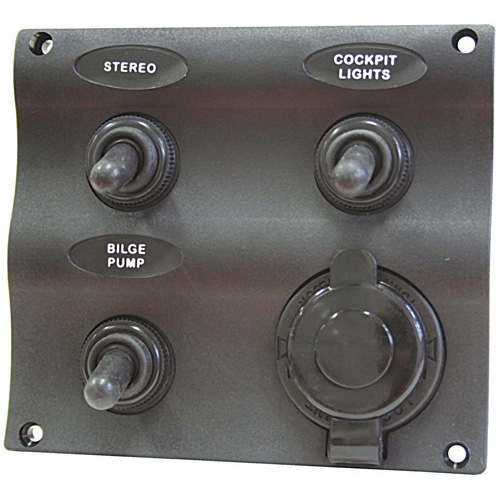 Switch Panel - Water Resistant - Wave Pattern Style - 3 Switches + 1 Cigarette Plug Socket