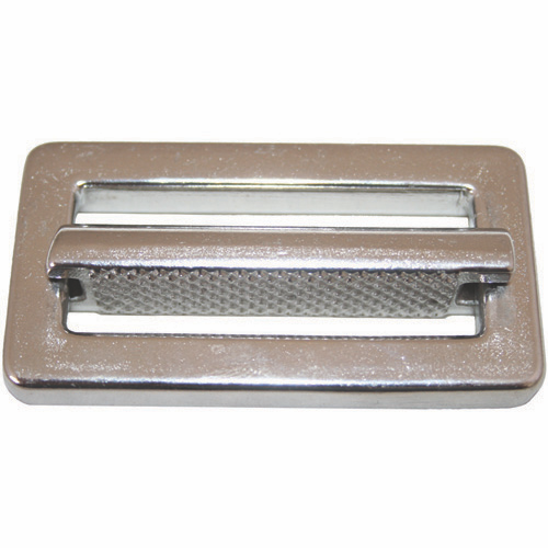 Polished 316 grade heavy duty stainless steel buckle with grip pattern sliding bar to suit 50mm diameter webbing. Overall Size: 67 x 36mm Webbing Slot Size: 51mm x 21mm