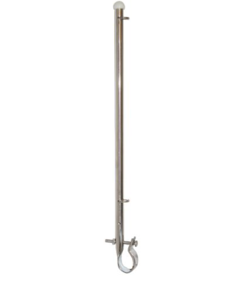 A rail mount polished stainless steel pole complete with pennant attachment rings.