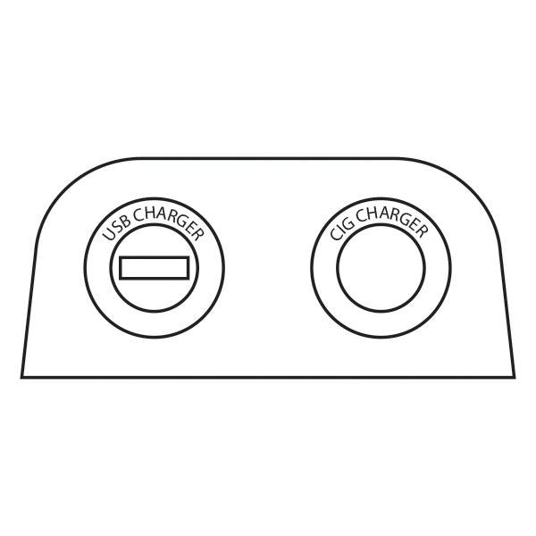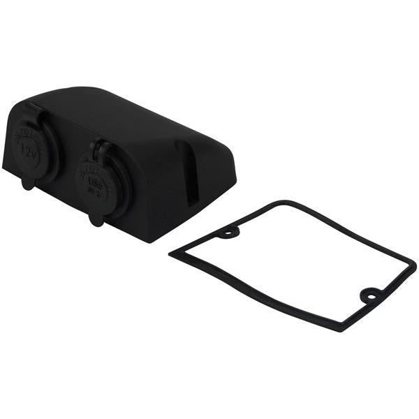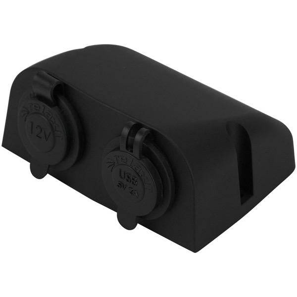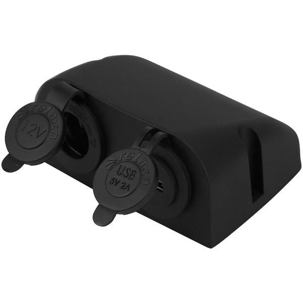 Relaxn 12V Surface Mount Black USB/Cigarette Charger Outlet Combo - 110(W) x 80(H) x 50(D)mm