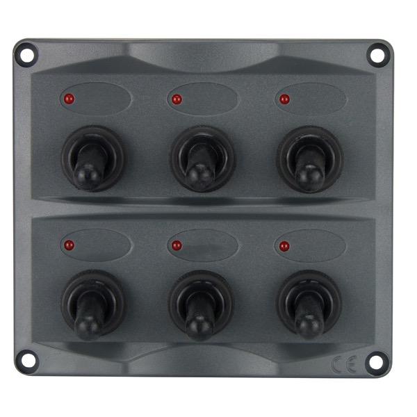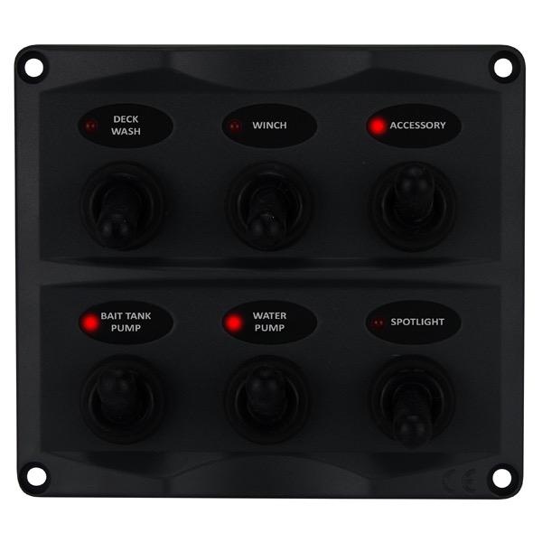 - Heavy-duty metal toggle switches with waterproof rubber boots.