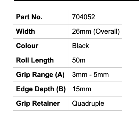 RELAXN EDGE TRIM - EPDM - STEEL INSERT WITH SEAL
