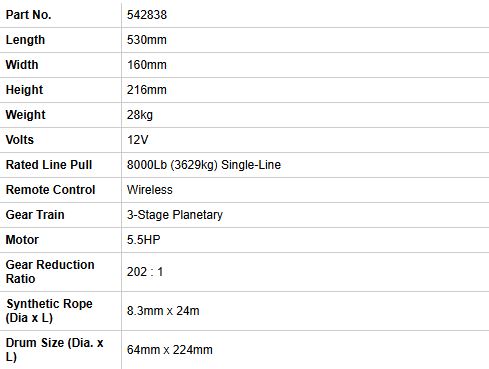 • When used in a boat trailer application, this winch is suitable for boats up to approx 6.0m with a max loaded weight of 1800kg.