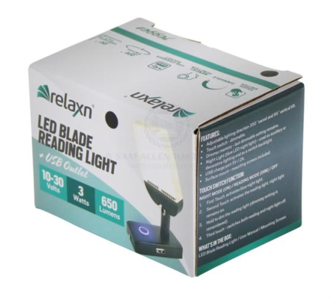 RELAXN LED - BLADE READING LIGHT - DIMMABLE - USB CHARGER (BLACK BASE)