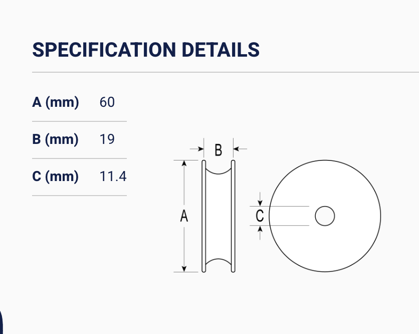 Ronstan 59mm Acetal Sheave, 19mm Width RF437