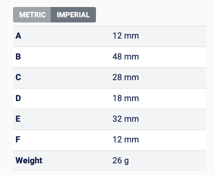 - Fastener size = M6 (1/4")