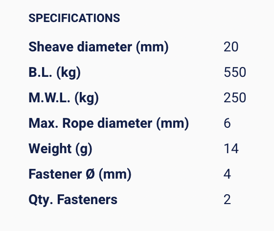 | Max. Rope diameter (mm) | 6 |