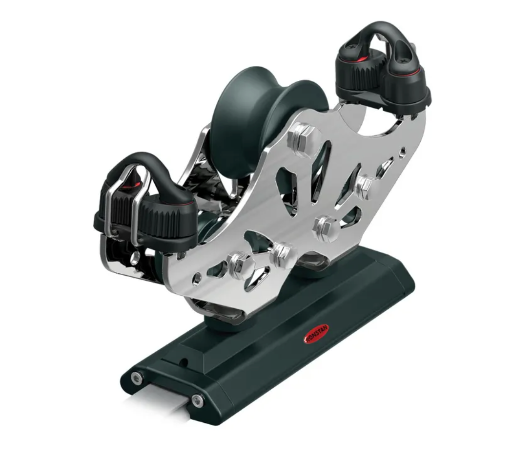 Car, 1 x 75mm (3") dia. sheave, triple 50mm (2") dia. control sheaves, C-Cleats