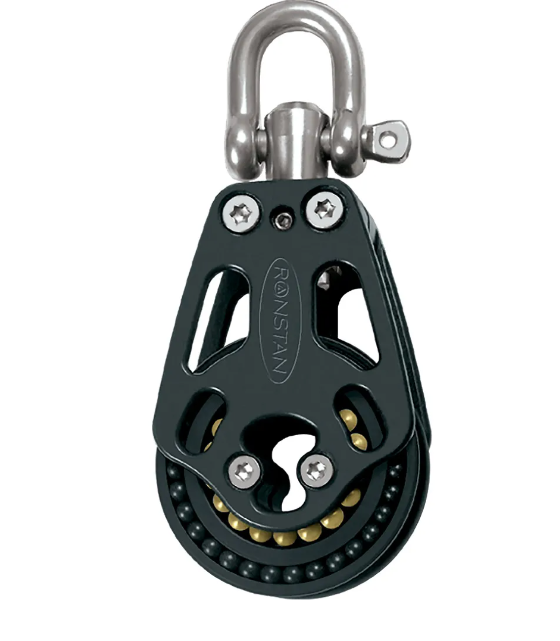 Fully machined Alloy cheek plates. Alloy sheaves with captive ball races. Torlon® needle rollers. Carbon black Acetal ball bearingsForged grade 17-4PH stainless steel shackles. Grade 316 stainless steel head post