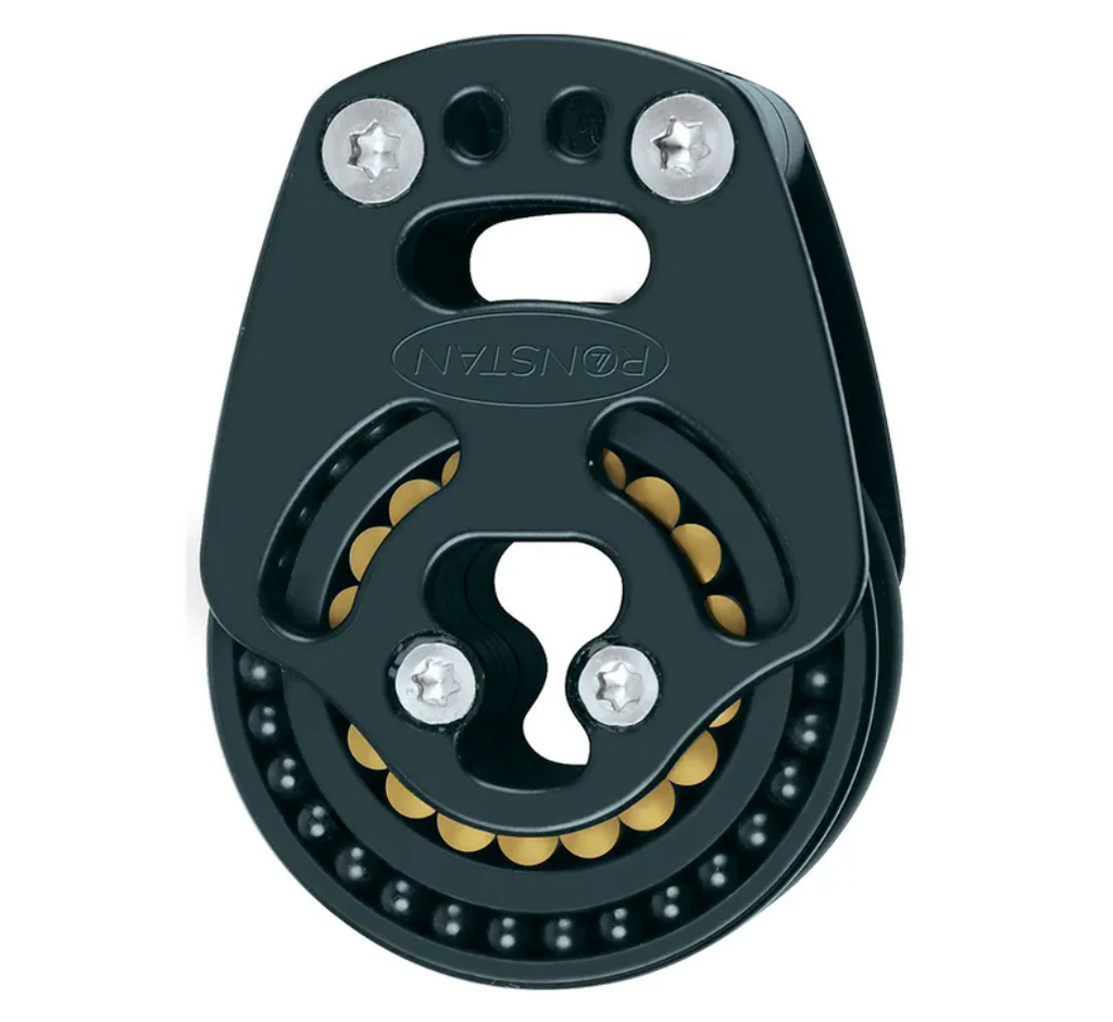 Fully machined Alloy cheek plates. Alloy sheaves with captive ball races. Torlon® needle rollers. Carbon black Acetal ball bearings