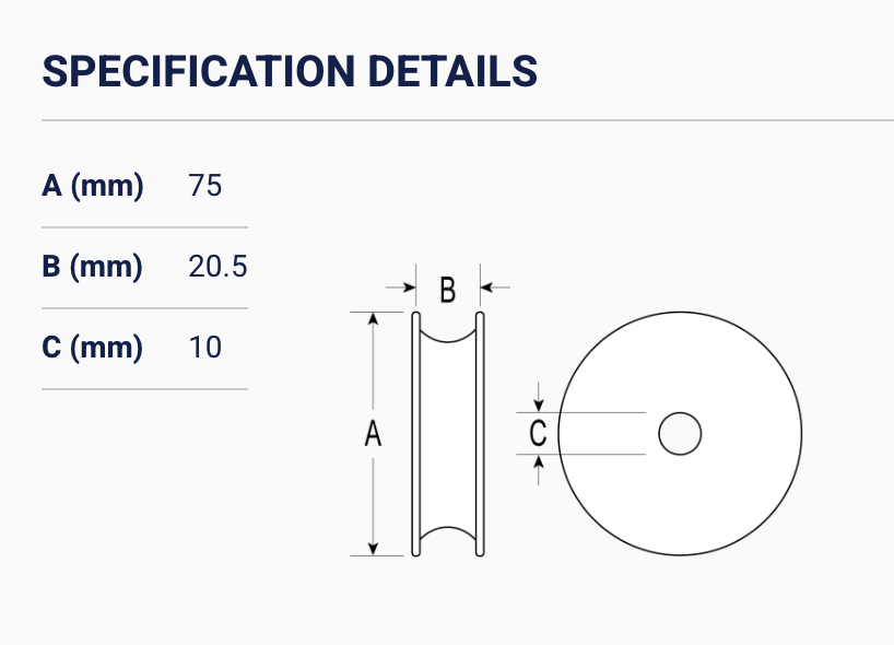 Torlon® needle rollers. Alloy sheave. Carbon black acetal ball bearings