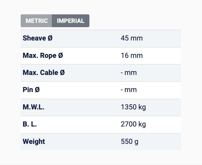 Snatch blocks are a tough and reliable solution for temporary leads and line deflection. Simple and quick to deploy, they can be easily opened when the load is released. The standard snap shackle head allows the block to swivel through 360°. Soft resilient cheeks reduce clatter and protect gelcoat and painted surfaces. Attachment point provided for shock cord hanger. Spare Parts; RF6262 Replacement Plunger Pin Kit