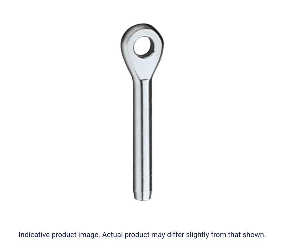 - Eye swage terminals are made from Grade 316 Stainless Steel for durability, strength and corrosion resistance.