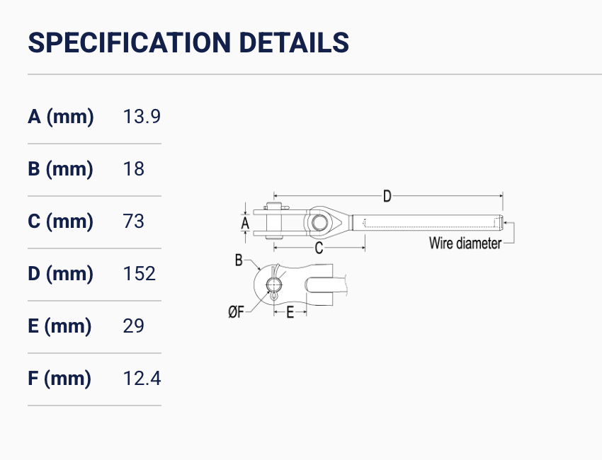 Ronstan Swage Toggle,7mm Wire 12.7mm (1/2”) Pin RF1507M0708