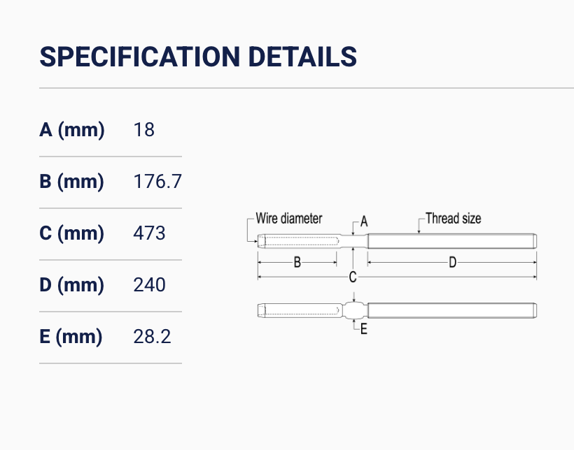 Ronstan T10 Swg Terminal, 16mm (5/8") Wire, 1” Thread RF1512M1616