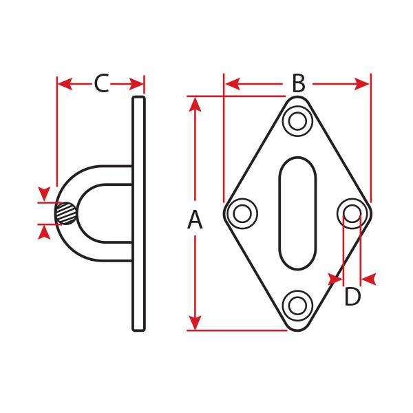 Pad Eye - Diamond - Stainless Steel - 8mm