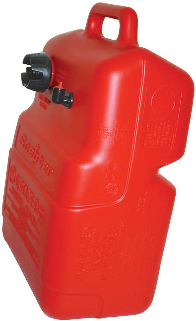 25 litre (6.6 US gallon) capacity. Available with built-in fuel gauge and vented cap (RWB3452)- or vented cap only (no fuel gauge) RWB3453. Supplied with fuel pickup assembly. Carried vertically.