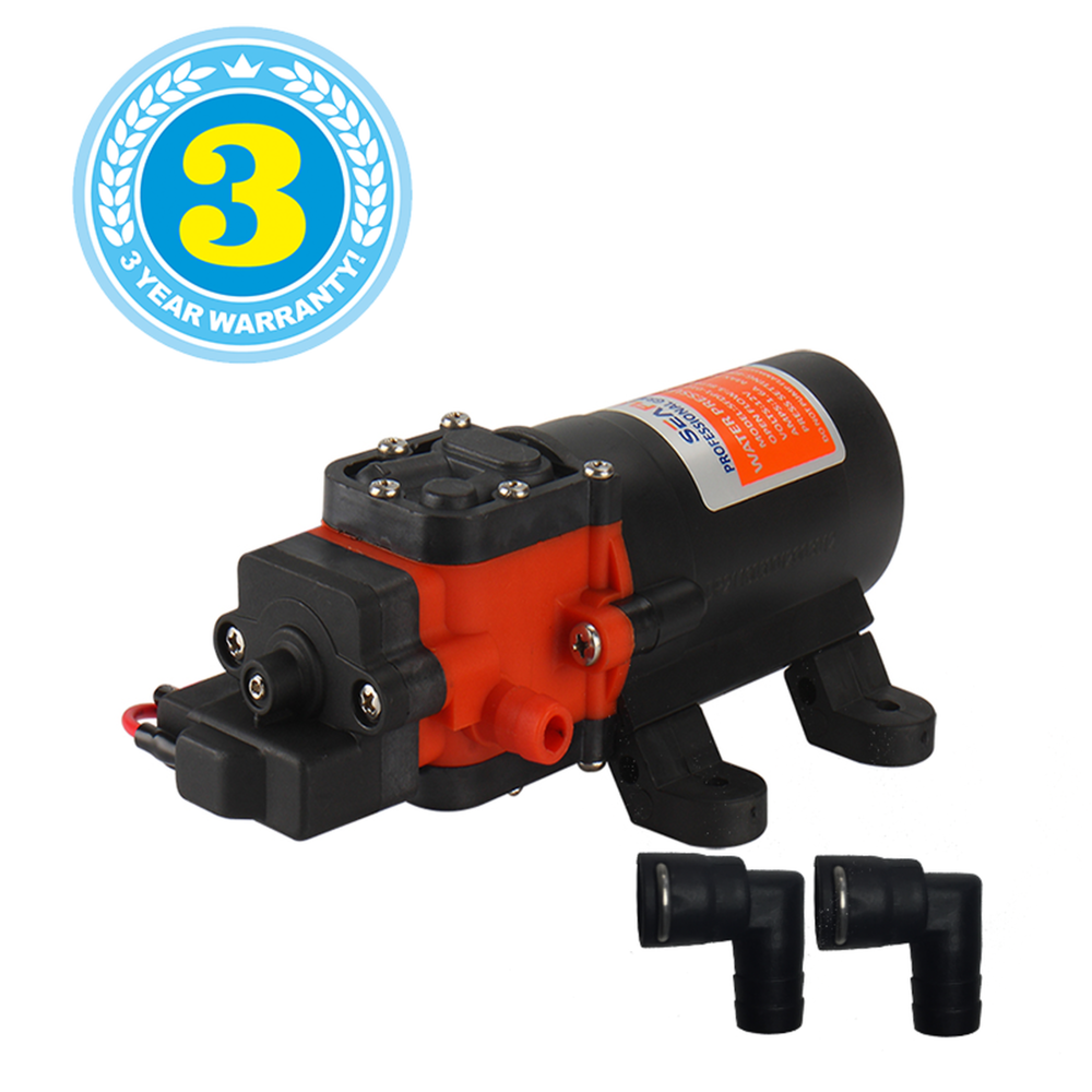 This Seaflo water pump excels in providing high flow, moderate pressure and is suitable for liquid transfer, spraying, circulation, filtration and dispensing. The twin chambers provide 3.8 litres of water every minute, and the unit is self priming and can run dry without damage. The built in pressure switch maximises efficiency, allowing the unit to sync with faucet use.