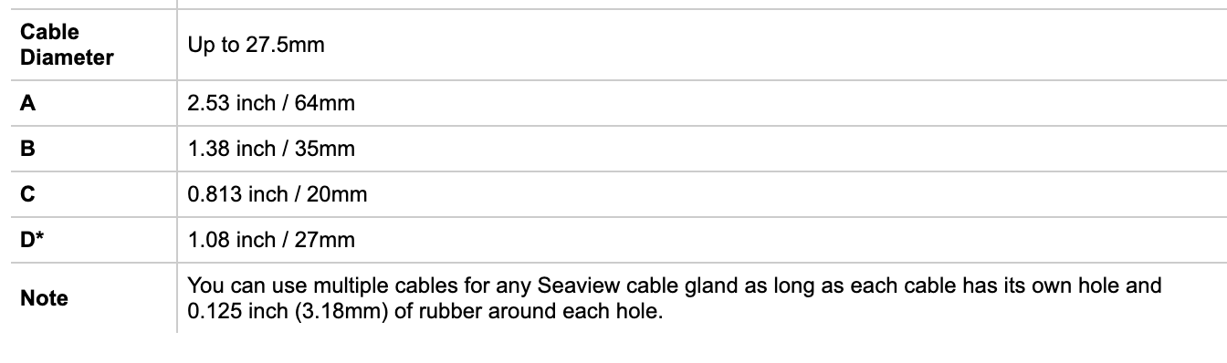 SEAVIEW CABLE SEALS (UP TO 27.5MM CABLE DIAMETRE)
