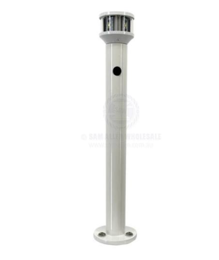 Seaview's light posts come in various height options to clear any obstructions as needed. These powder coated aluminum light posts are 1.25 inch in diameter with a 2.75 inch round base plate. Comes with LED combination masthead all-round light bar top.